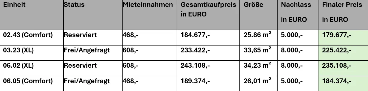 - Sonderrabatt von 5.000 € auf die Resteinheiten