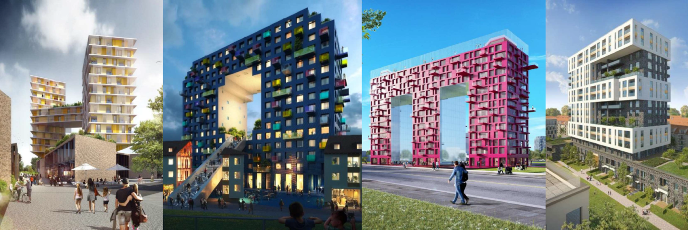 Vom Einfamilienhaus – Mehrfamilienhäuser, Schulen, Kindergärten, Altersheime, Sport und Freizeitstätten, aber auch Einzelhandel, Discounter, Einkaufscentren – werden in sehr großzügiger und offener Bauweise auf dem 140 Hektar großen Gelände erstellt. Der Startarchitekt Winy Maas aus den Niederlanden hat sowohl für die Grundlagengestaltung des Quartiers als auch für die Architektur des Highlights Orbit federführend beigetragen.