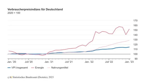 Der harmonisierte Verbraucherpreisindex für Januar 2023 liegt bei +9,2 % zum Vorjahresmonat